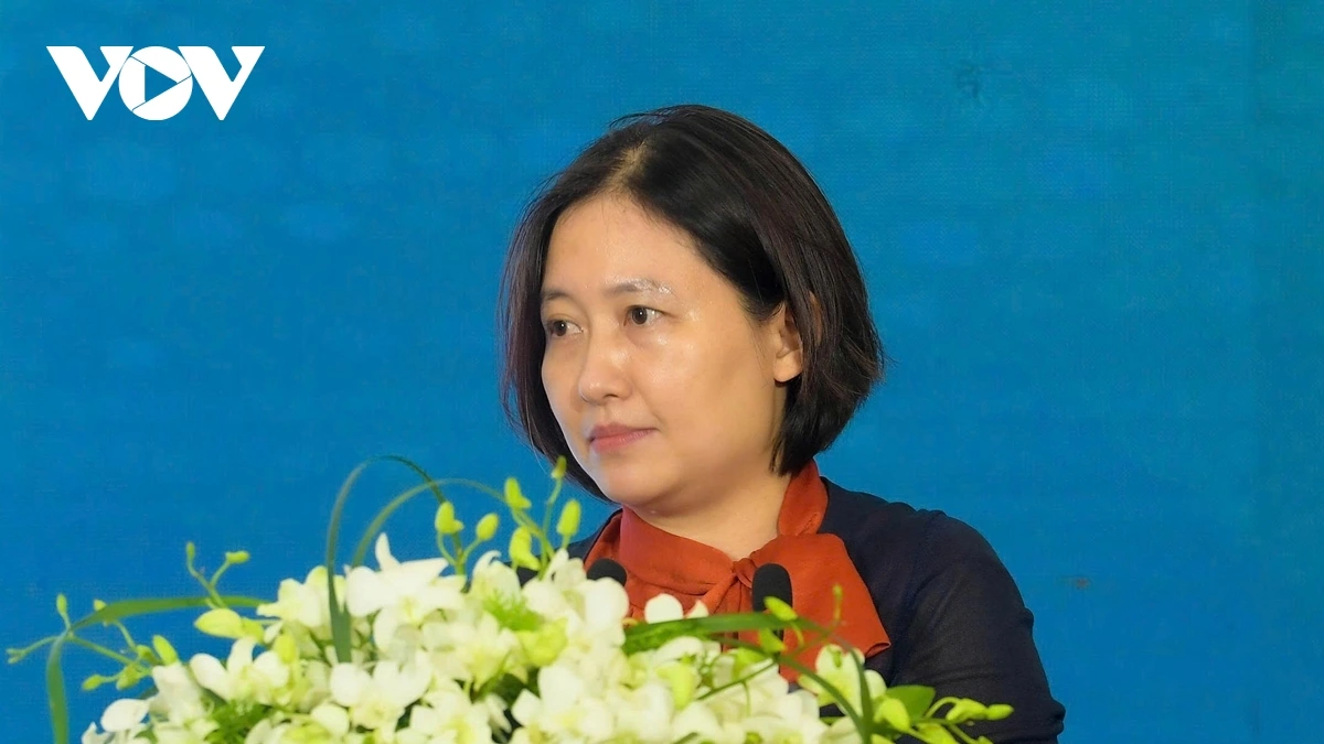 Bà Nguyễn Thu Thủy, Phó Cục trưởng, Cục Phát triển Doanh nghiệp Nhà nước (Bộ Tài chính) trình bày tham luận "Vai trò dẫn dắt và thách thức năng lực cạnh tranh của DNNN trong bối cảnh mới".