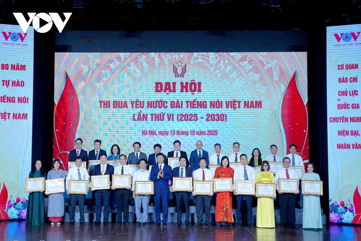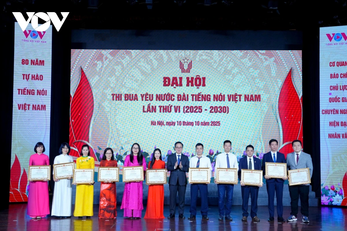 VOV.VN - Chiều 10/10, tại Trụ sở phát thanh Quốc gia (58 Quán Sứ, Hà Nội), Đài Tiếng nói Việt Nam (VOV) tổ chức Đại hội Thi đua yêu nước lần thứ VI, tổng kết giai đoạn 2020-2025 và phát động phong trào thi đua mới, hướng tới xây dựng VOV trở thành cơ quan truyền thông chủ lực, hiện đại và nhân văn.