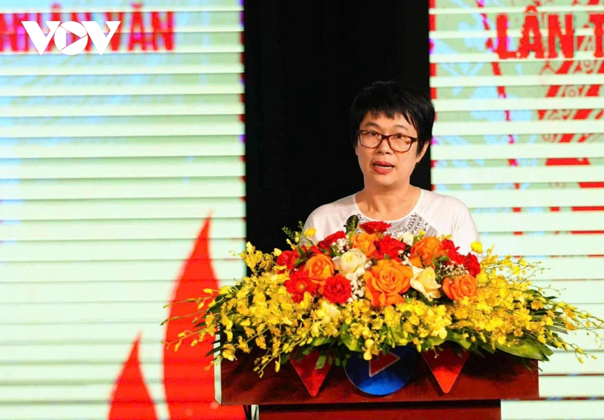Bà Nguyễn Thị Hằng Nga (Trưởng phòng Thời sự - Ban Thời sự VOV1) đọc tham luận tại Đại hội