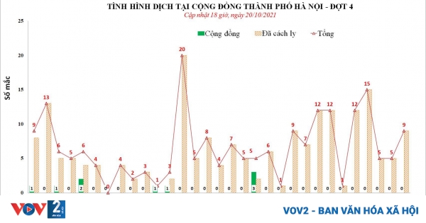 VOV2 - [VOV2] - Từ18h ngày 19/10 đến 18h ngày 20/10 Hà Nội ghi nhận 09 bệnh nhân đều đã được cách ly.