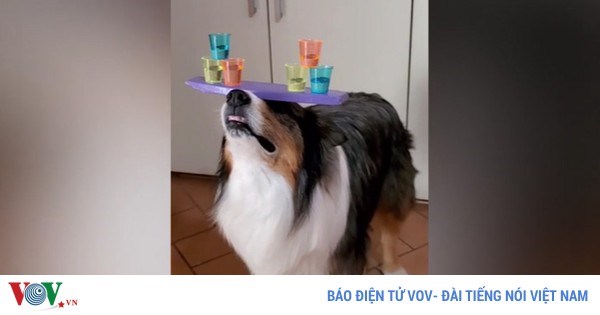 VOVVN - VOV.VN - Chú chó Rush đến từ Vasto, Italy khiến người xem vô cùng thán phục khi vừa cân bằng chiếc khay có 2 tháp nước trên đầu vừa di chuyển bằng ván trượt.