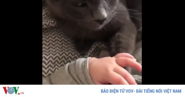 VOVVN - VOV.VN - Khoảnh khắc chú mèo dịu dàng nắm bàn tay nhỏ xíu của em bé khiến trái tim chúng ta tan chảy vì quá đáng yêu.