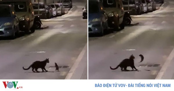 VOVVN - VOV.VN - Bất ngờ gặp mèo giữa đường, chú chuột (có vẻ như chuột cống) có vẻ như không hề sợ hãi, mà ngược lại còn tung chiêu đá đối thủ như một ninja thực...