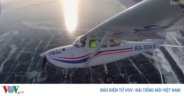 VOV.VN - Bất chấp các vết nứt trên bề mặt băng của hồ Baikal, chiếc máy bay Cessna 172 vẫn hạ cánh và cất cánh ngoạn mục trên hồ sâu nhất thế giới này.