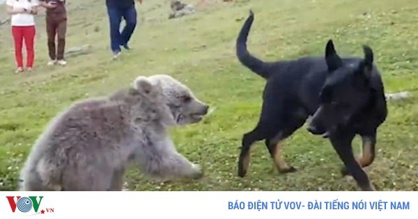 VOVVN - VOV.VN - Khi gấu xám đang lang thang trên đồng cỏ thì bất ngờ chú chó đen chạy đến. Cả hai nhanh chóng chơi trò đuổi bắt trước sự ngạc nhiên của chủ nhân.