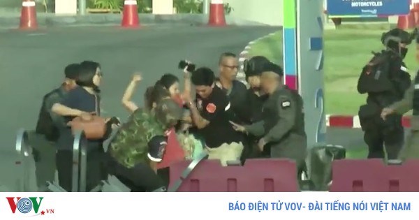VOVVN - VOV.VN - Các binh sĩ, cảnh sát, đặc nhiệm Thái Lan khẩn trương đưa người dân sơ tán khỏi một trung tâm thương mại nơi xảy ra vụ xả súng đẫm máu vào sáng 9/2.