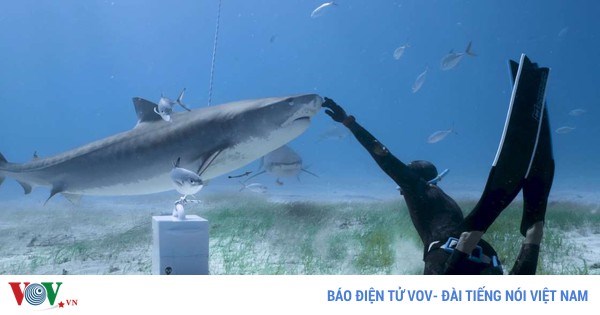 VOVVN - VOV.VN - Hai chú cá mập hổ trong đoạn video tỏ ra hiền lành và thân thiện dù chúng đươc coi là một trong những loài cá nguy hiểm nhất đối với con người.