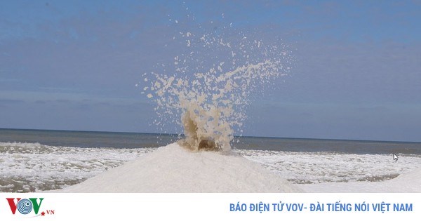 VOVVN - VOV.VN - Áp lực của sóng lên các tảng băng khiến nước và tuyết bắn lên, giống hiện tượng núi lửa phun trào. Cảnh tượng xảy ra ở ven Hồ Michigan hôm 16/2.