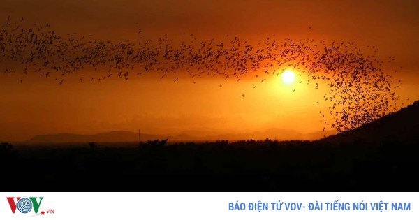 VOVVN - VOV.VN - Milford ghi lại hình ảnh đẹp khó tả này trong buổi hoàng hôn ở Battambang, Campuchia khi hàng ngàn con dơi bay kín trời về phía hồ Tonle để tìm mồi.