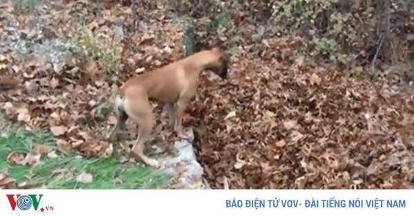 VOVVN - VOV.VN - Rocky the Boxer là 1 chú chó trung thành và đáng yêu. Khi thấy chủ nhân biến mất sau đống lá, chú cũng nhảy luôn vào đống lá này.
