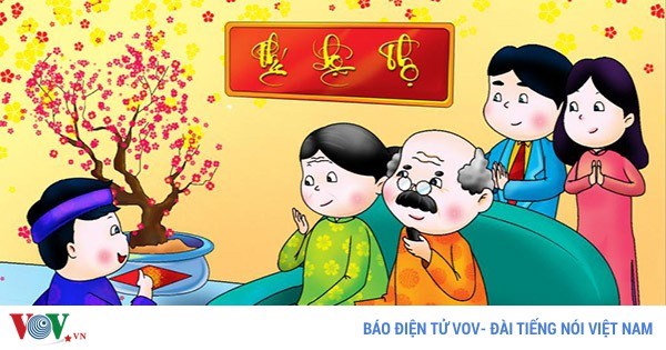 VOVVN - VOV.VN -Người xông đất đến vào sáng mồng 1 và mang theo cả trái cây hay bánh mứt và lì xì mừng tuổi trẻ con trong nhà.