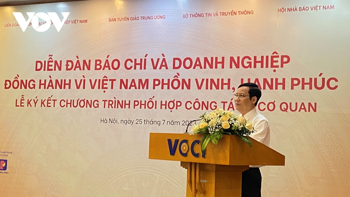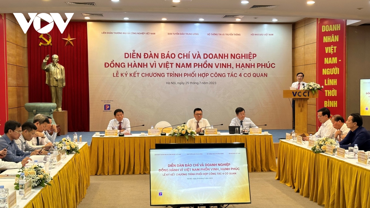 Trong khuôn khổ Diễn đàn hôm nay cũng diễn ra Lễ ký kết Chương trình phối hợp công tác giữa bốn cơ quan: Ban Tuyên giáo Trung ương, Bộ Thông tin và Truyền thông, Hội Nhà báo Việt Nam và VCCI. Chương trình được kỳ vọng sẽ tạo ra những điều kiện và xung lực mới cho sự đồng hành, hợp tác giữa cộng đồng doanh nghiệp Việt Nam và giới báo chí – truyền thông, hướng đến cùng thành công, góp phần thực hiện mục tiêu đưa nước đến năm 2045 trở thành quốc gia phát triển, thu nhập cao, phồn vinh, hạnh phúc.