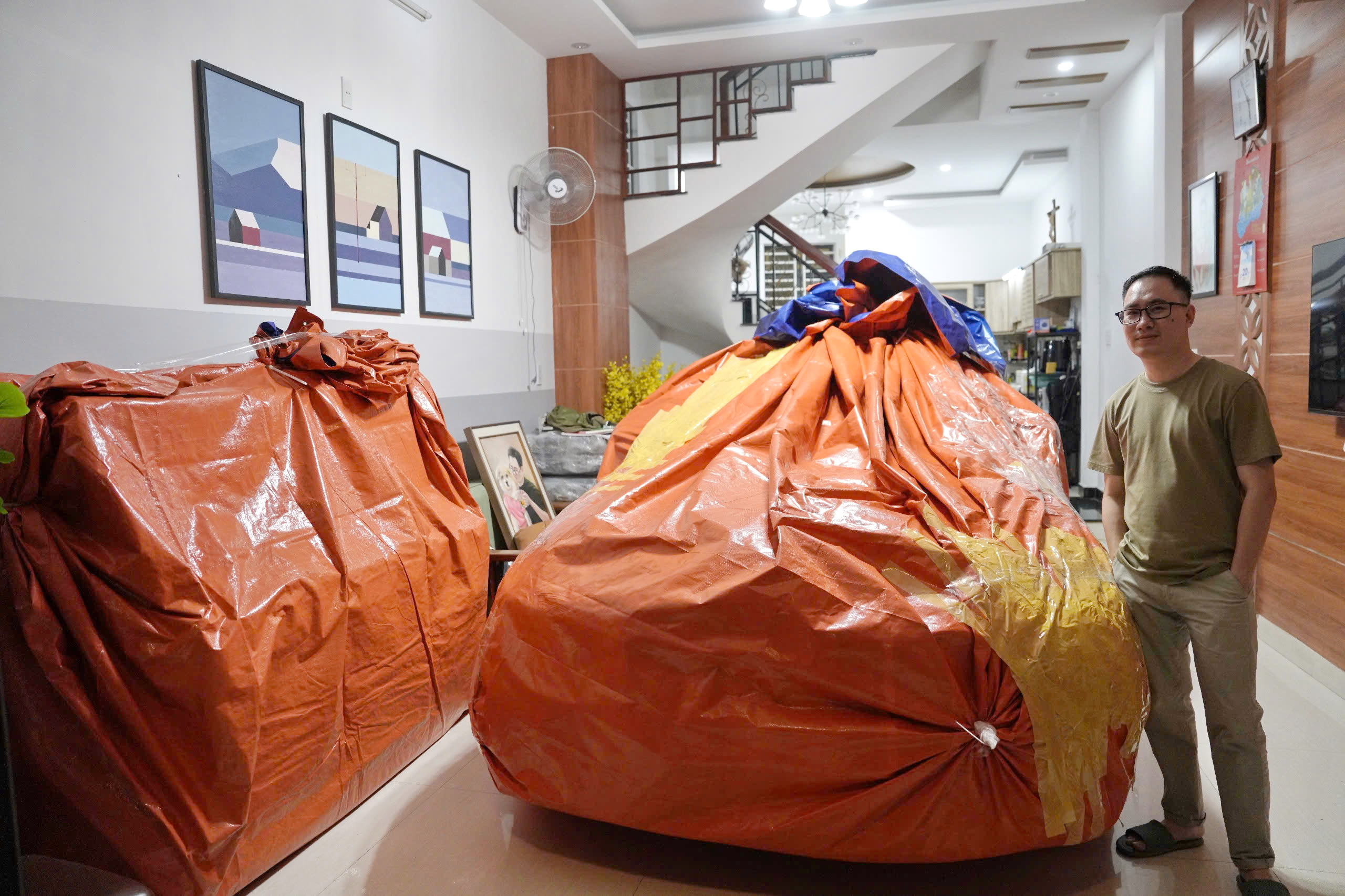 Người dân Đà Nẵng dùng bạt bọc kín ô tô trong nhà phòng mưa bão