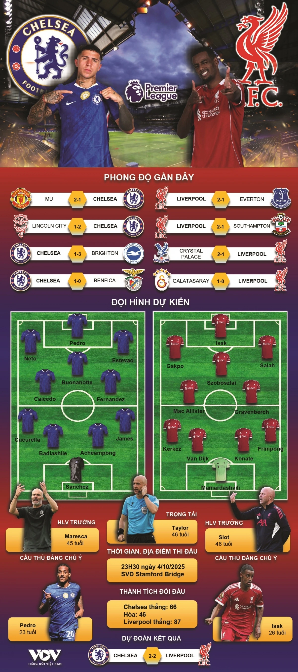 VOV.VN - Dự đoán kết quả và đội hình ra sân trận Chelsea vs Liverpool thuộc khuôn khổ vòng 7 Ngoại hạng Anh 2025/2026 diễn ra lúc 23h30 ngày 4/10.
