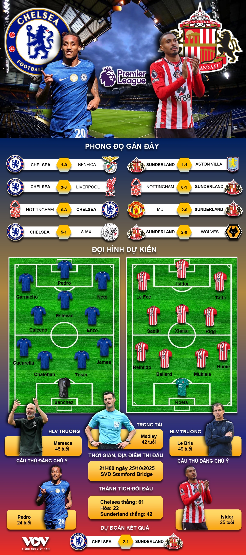 VOV.VN - Dự đoán kết quả và đội hình ra sân trận Chelsea vs Sunderland thuộc khuôn khổ vòng 9 Ngoại hạng Anh 2025/2026 diễn ra lúc 21h00 ngày 25/10.
