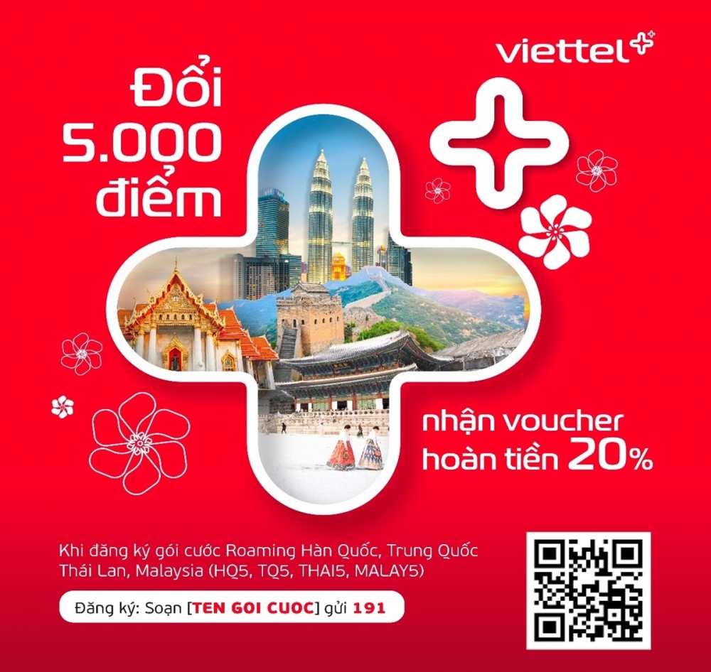 VOV.VN - Tết này, gạt đi nỗi lo về chi phí, từ 15/01-29/02/2024, khách hàng Viettel sẽ được hoàn tiền 20% khi đăng ký gói cước roaming tại Hàn Quốc, Trung Quốc, Thái Lan và Malaysia chỉ với 5.000 điểm Viettel++ và có cơ hội trải nghiệm miễn phí gọi thoại quốc tế.