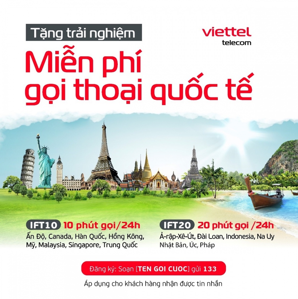 Theo đó, chỉ cần soạn IFT10 hoặc IFT20 gửi 133, khách hàng sẽ có ngay 10 hoặc 20 phút gọi thoại cho bạn bè, người thân tại nước ngoài (các quốc gia nằm trong chương trình trải nghiệm) mà không cần lo lắng về cước phí trong vòng 24 giờ.