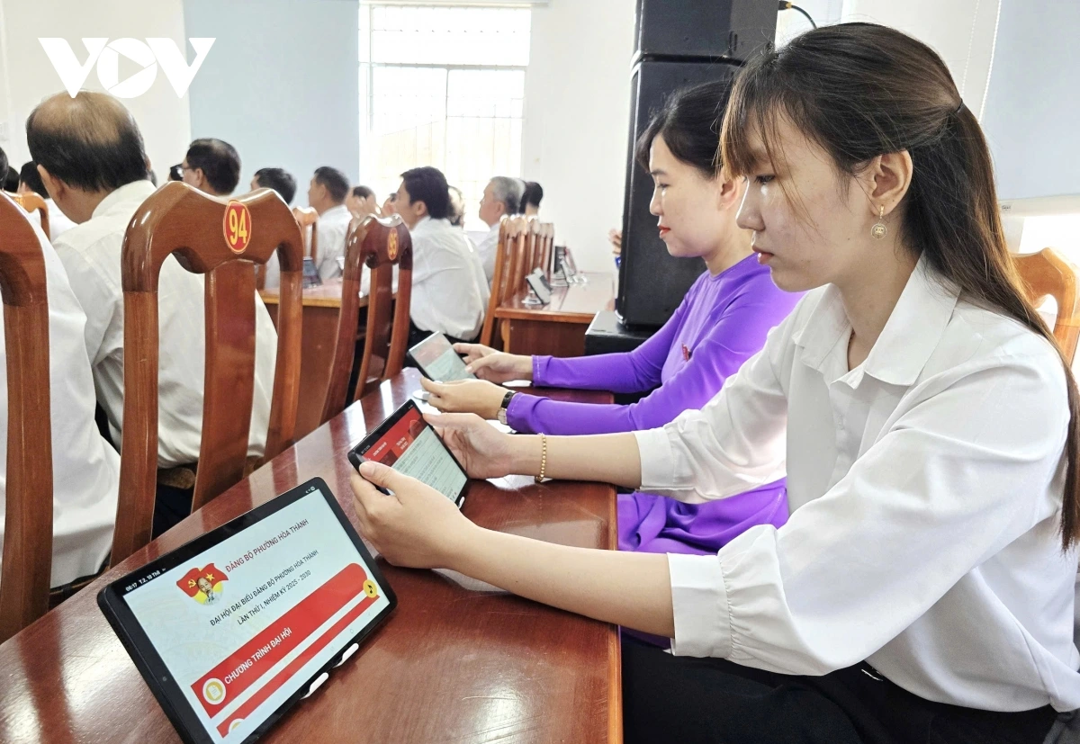 Trong tổ chức Đại hội Đảng cấp xã, nhiều đơn vị trên địa bàn tổ chức “Đại hội không giấy”. Trong đó, phường Hòa Thành là đơn vị tiên phong thực hiện, với phương châm “Đảng viên phải đi trước, làm trước” nhằm lan tỏa tinh thần chuyển đổi số đến nhân dân.
