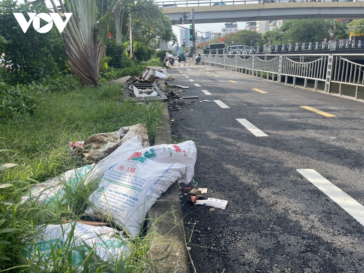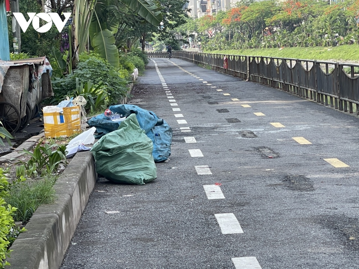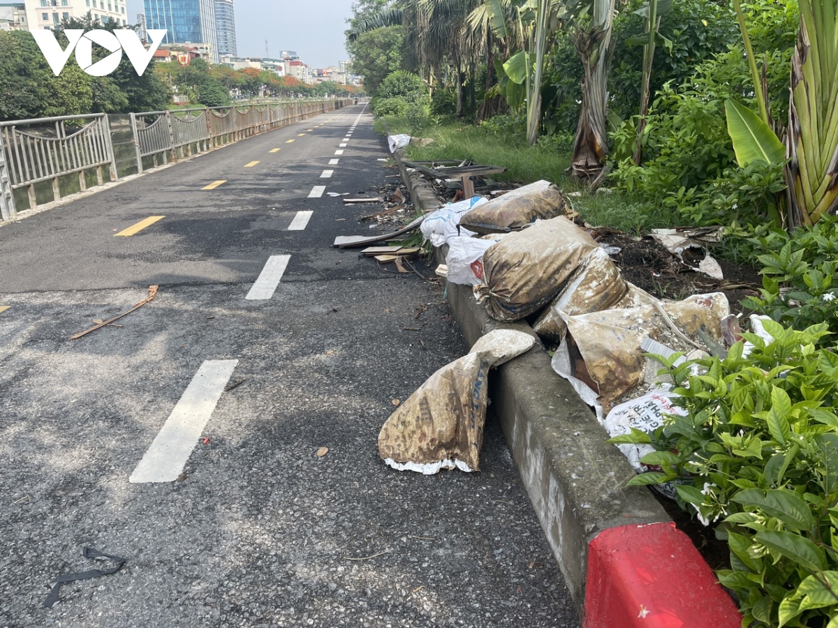 VOV.VN - Tuyến đường dọc sông Tô Lịch (từ Ngã Tư Sở đi Cầu Giấy) được cải tạo thành đường dành riêng cho xe đạp và người đi bộ. Tuy nhiên, dọc tuyến phố này, nhiều đoạn trở thành nơi đổ rác thải.
