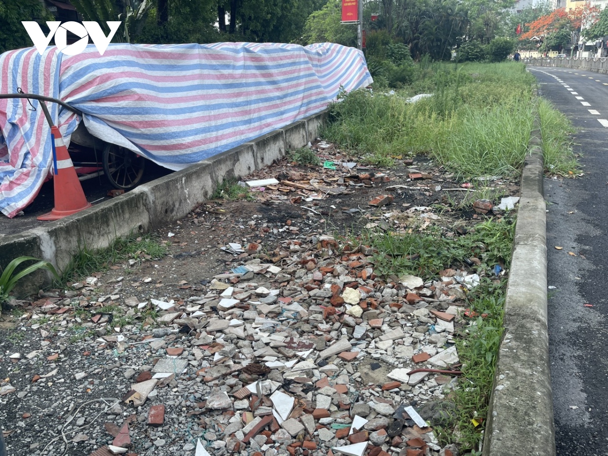 Nhiều đoạn đường vỉa hè vẫn còn ngổn ngang, đất đá lăn lóc giữa đường.