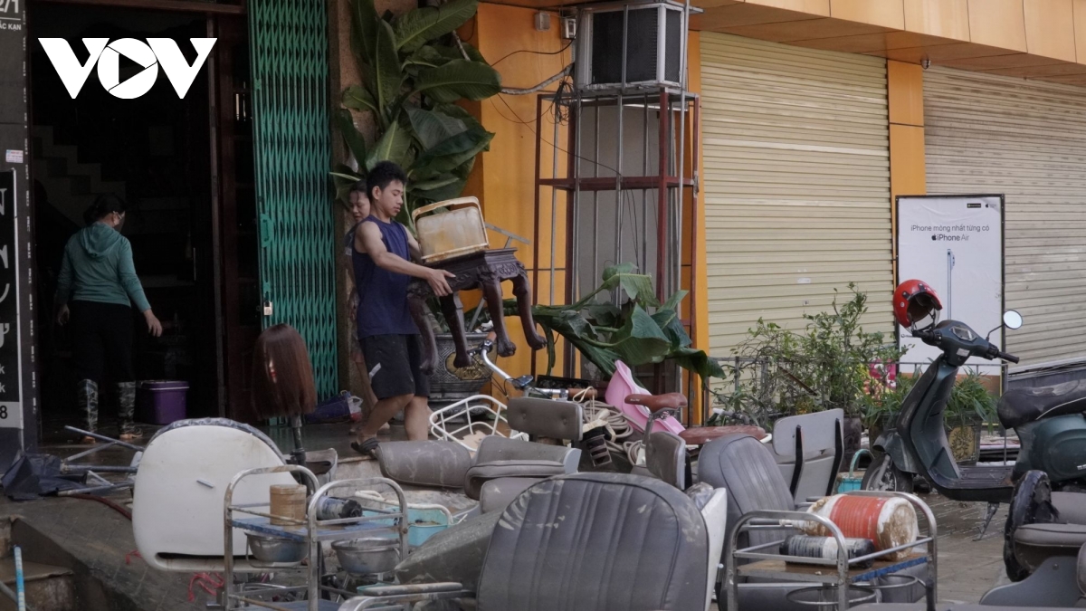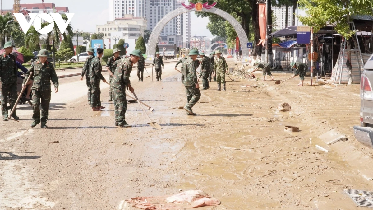 VOV.VN - Ngày thứ 3 sau trận lũ lịch sử ở Thái Nguyên, nước đã rút ở nhiều tuyến phố trung tâm để lại khung cảnh tan hoang, bùn đất bủa vây nhà cửa và các tuyến đường. Hiện, người dân cùng các lực lượng quân đội, công an đã khẩn trương bắt tay vào dọn dẹp.