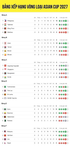 Bảng xếp hạng vòng loại Asian Cup 2027 mới nhất: ĐT Việt Nam bị Malaysia bỏ xa