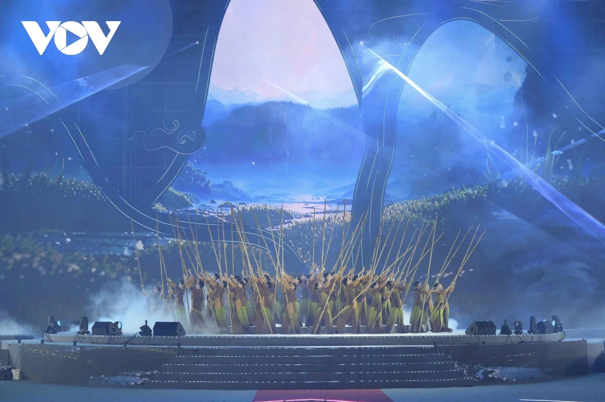 Với sân khấu rộng gần 4.000m², ứng dụng công nghệ trình chiếu mapping hiện đại, đêm khai mạc đã chiêu đãi khán giả một bữa tiệc nghệ thuật thịnh soạn. Chương trình gồm 3 chương: "Khởi nguồn huyền thoại", "Dòng chảy di sản" và "Dòng sông khát vọng" với sự tham gia của gần 1.000 nghệ nhân, diễn viên, cùng các nghệ sĩ nổi tiếng như Tùng Dương, Tố Hoa... đã tái hiện sống động hành trình của dòng sông Mẹ, từ nơi gặp gỡ dòng suối Lũng Pô tại cột mốc 92, bồi đắp nên những giá trị di sản và nay đang cuộn chảy mang theo khát vọng vươn ra biển lớn.
