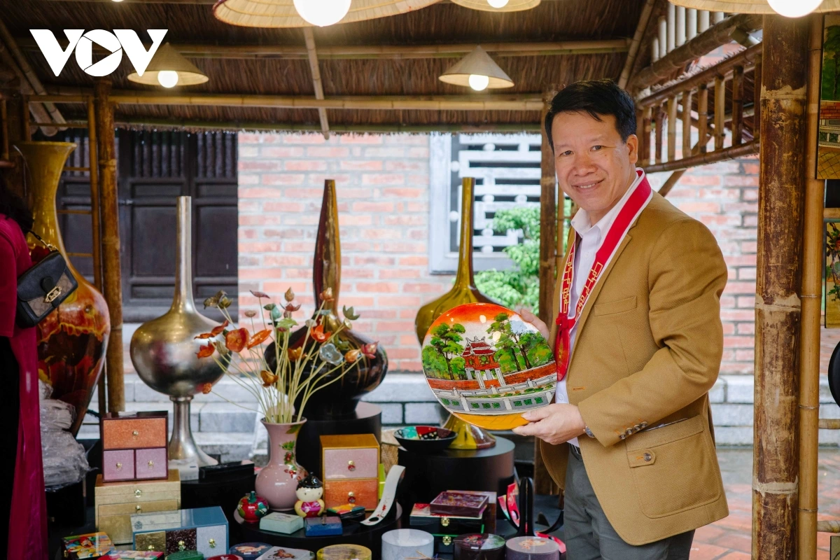 Nghệ nhân Đỗ Hùng Chiêu, làng nghề sơn mài Hạ Thái, xã Hồng Vân, Hà Nội, cho biết: “Đến Festival Thăng Long – Hà Nội 2025, làng nghề mang hai dòng sản phẩm chính. Một là những tác phẩm văn hóa Việt, thể hiện qua con rối, sinh hoạt lúa nước và đời sống thường ngày, giúp du khách hiểu văn hóa truyền thống. Thứ hai là các sản phẩm quà tặng hiện đại, giới thiệu hình ảnh quê hương, đất nước đến bạn bè trong và ngoài nước".