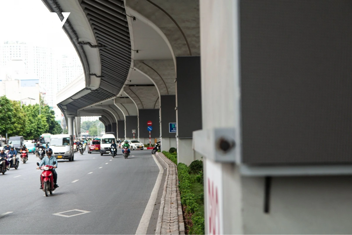 Sáng 5/11, theo ghi nhận của phóng viên, đoạn từ cầu Vĩnh Tuy đến Ngã Tư Sở đã được dựng khung thép; riêng khu vực từ ngã tư Tôn Thất Tùng – Trường Chinh đến Ngã Tư Sở, nhiều trụ cầu đã lắp hoàn thiện các màn hình LED cỡ lớn.