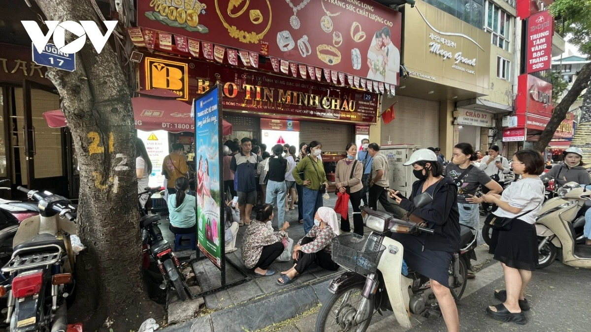 Tại Hà Nội, từ sáng sớm, trước cửa hàng vàng lớn trên phố Trần Nhân Tông hàng trăm người đã xếp hàng ngay từ khi cửa chưa mở. Nhiều người cho biết họ theo dõi giá vàng giảm nhẹ so với hôm trước nên tranh thủ đến mua “vì sợ lại tăng trở lại”.