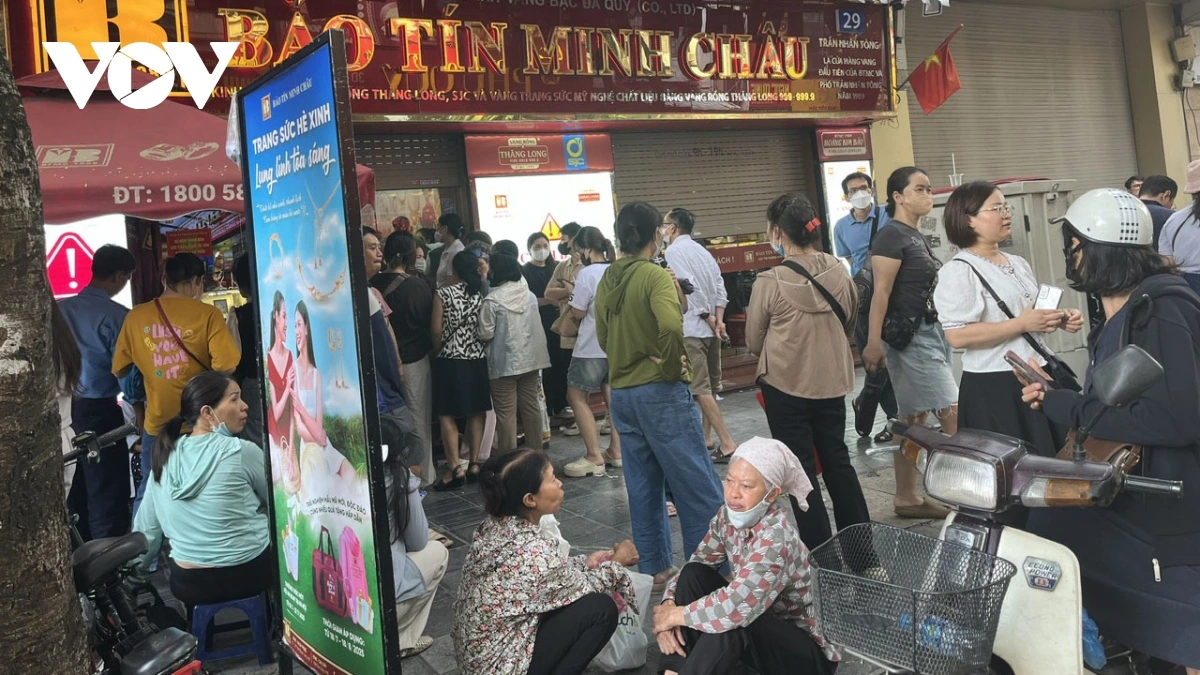 Tại các cửa hàng vàng trên phố Trần Nhân Tông, trung tâm giao dịch vàng lớn nhất Hà Nội, lượng khách sáng nay giảm so với mọi hôm, một số người đến chỉ hỏi giá rồi rời đi. Song không ít người vẫn kiên nhẫn xếp hàng để mua.