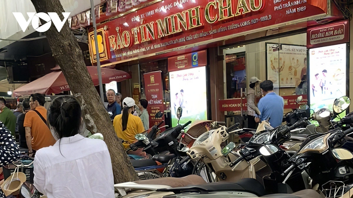 VOV.VN - Sáng 13/10, giá vàng trong nước tiếp tục lập đỉnh mới, cao hơn thế giới gần 15 triệu đồng/lượng. Nhiều thương hiệu lớn như Bảo Tín Minh Châu, Phú Quý treo biển “hết hàng” khi nhu cầu mua vàng tăng đột biến.