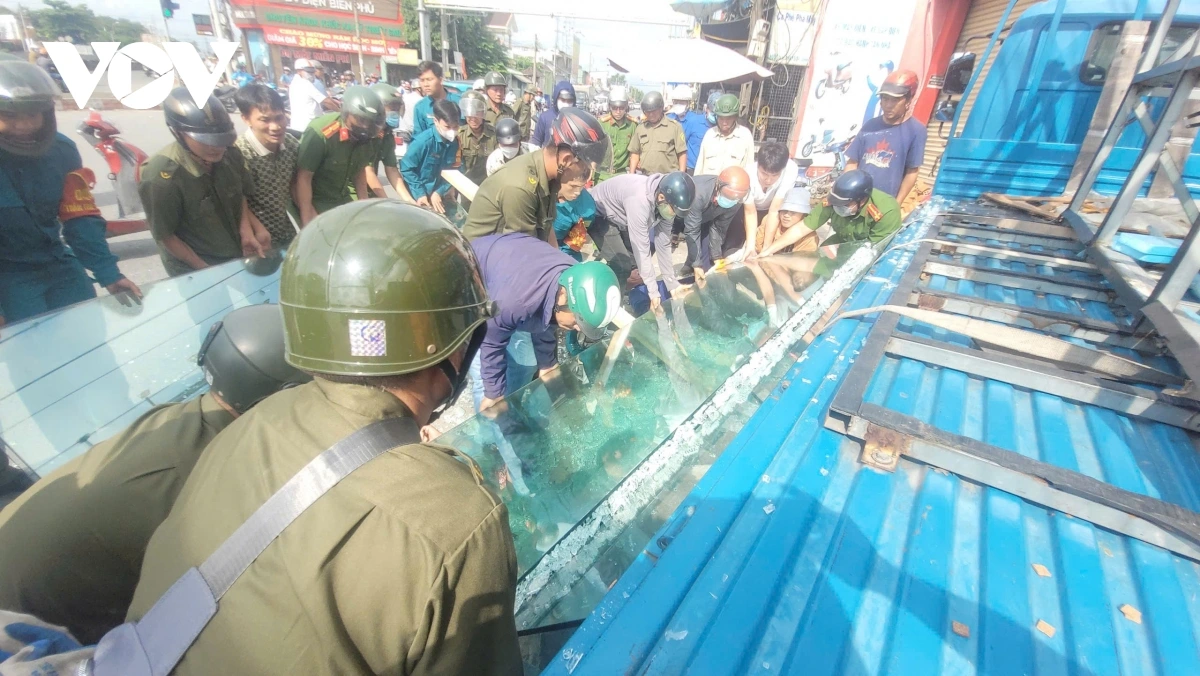 VOV.VN - Sáng 4/10, tại xã Bình Đức, tỉnh Tây Ninh (Long An cũ) nhiều tấm kính cường lực trên một xe tải đang dừng đỗ tại công trình xây dựng bất ngờ đổ xuống đè trúng hai công nhân đứng phía dưới, khiến cả hai bất tỉnh.