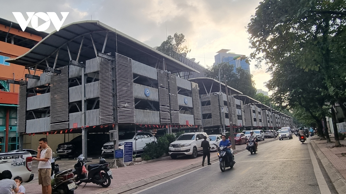 Bãi đỗ xe cao tầng trên phố Nguyễn Công Hoan ở gần khu vực 3 trường học...