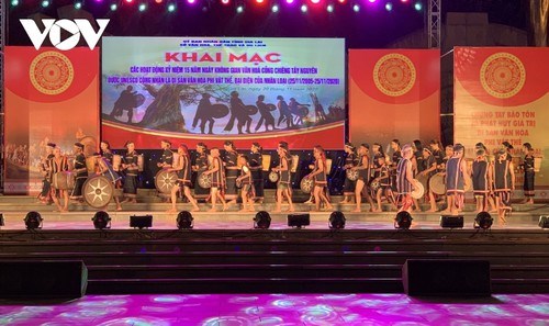 VOV5 - (VOV5) -100 nghệ sĩbiểu diễn bài chiêng và xoang mừng lúa mới với tiết tấu vui tươi, thể hiện niềm vui được mùa, tôn vinh thành quả lao động.