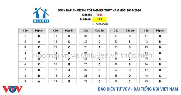 VOVVN - VOV.VN -Chiều nay (9/8), các thí sinh tham dự kỳ thi tốt nghiệp THPT 2020 làm bài thi môn Toán, hình thức trắc nghiệm, thời gian làm bài 90 phút.