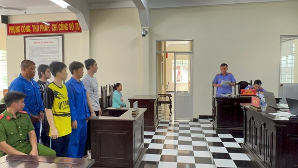 VOVVN - VOV.VN - Ngày 9/4, TAND TP. Châu Đốc, tỉnh An Giang mở phiên toà xét xử sơ thẩm nhóm người đưa ma túy và vật cấm vào buồng giam. HĐXX đã tuyên phạt 5 bị...