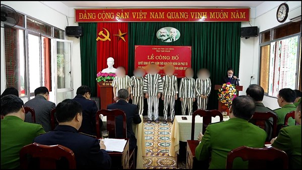 VOVVN - VOV.VN - Trại Tạm giam Công an tỉnh Cao Bằng vừa tổ chức công bố quyết định giảm thời hạn chấp hành án phạt tù cho phạm nhân dịp Tết Nguyên đán Giáp Thìn 2024.