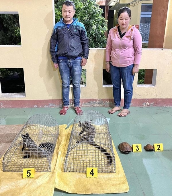 VOVVN - VOV.VN - Công an đột xuất kiểm tra, bắt quả tang Võ Thị Thu Hoài và Lưu Phúc Chiến đang thực hiện hành vi mua bán trái phép động vật hoang dã tại nhà của...