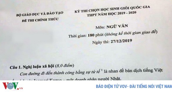 VOVVN - VOV.VN - Đề thi học sinh giỏi quốc gia môn Ngữ văn năm 2019 đề cập đến sự tử tế và tâm hồn cao đẹp trong mỗi con người được đánh giá có tính gợi...