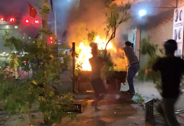 VOVVN - VOV.VN - Sau khi ký biên bản vi phạm hành chính, tài xế Lê Văn Thắng tìm cách nhảy lên ôtô tải nâng của cảnh sát giao thông rồi giật nắp bình xăng, châm lửa...
