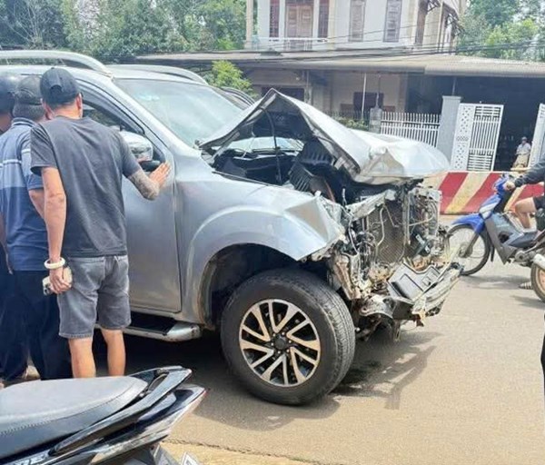 VOVVN - VOV.VN - Hoàng Tấn Lực (28 tuổi, Đắk Lắk) lái xe bán tải gây tai nạn liên hoàn khiến một học sinh bị thương, rồi bỏ chạy. Người dân đã chặn bắt và giao cho...