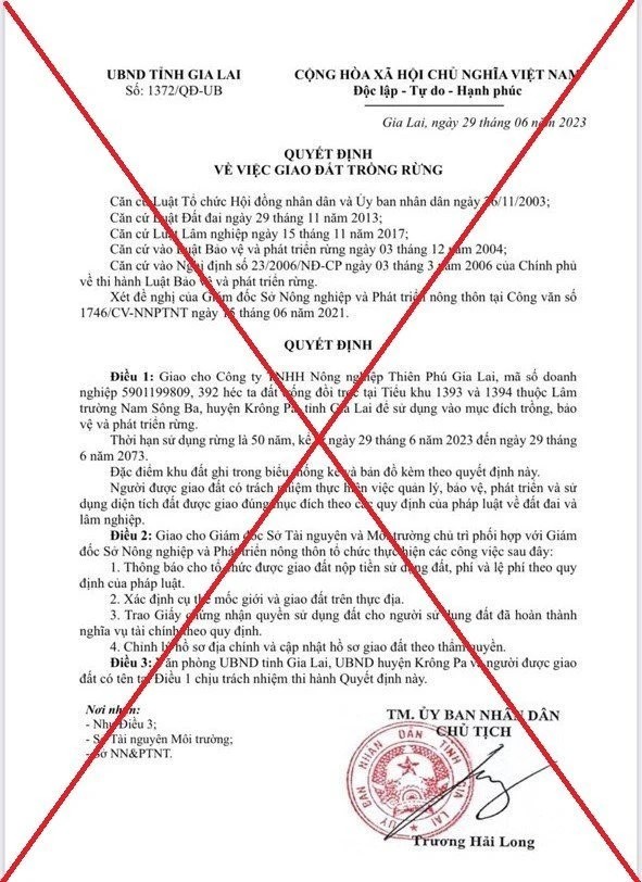 Giả mạo quyết định của Chủ tịch UBND tỉnh Gia Lai, giao gần 400ha rừng phòng hộ