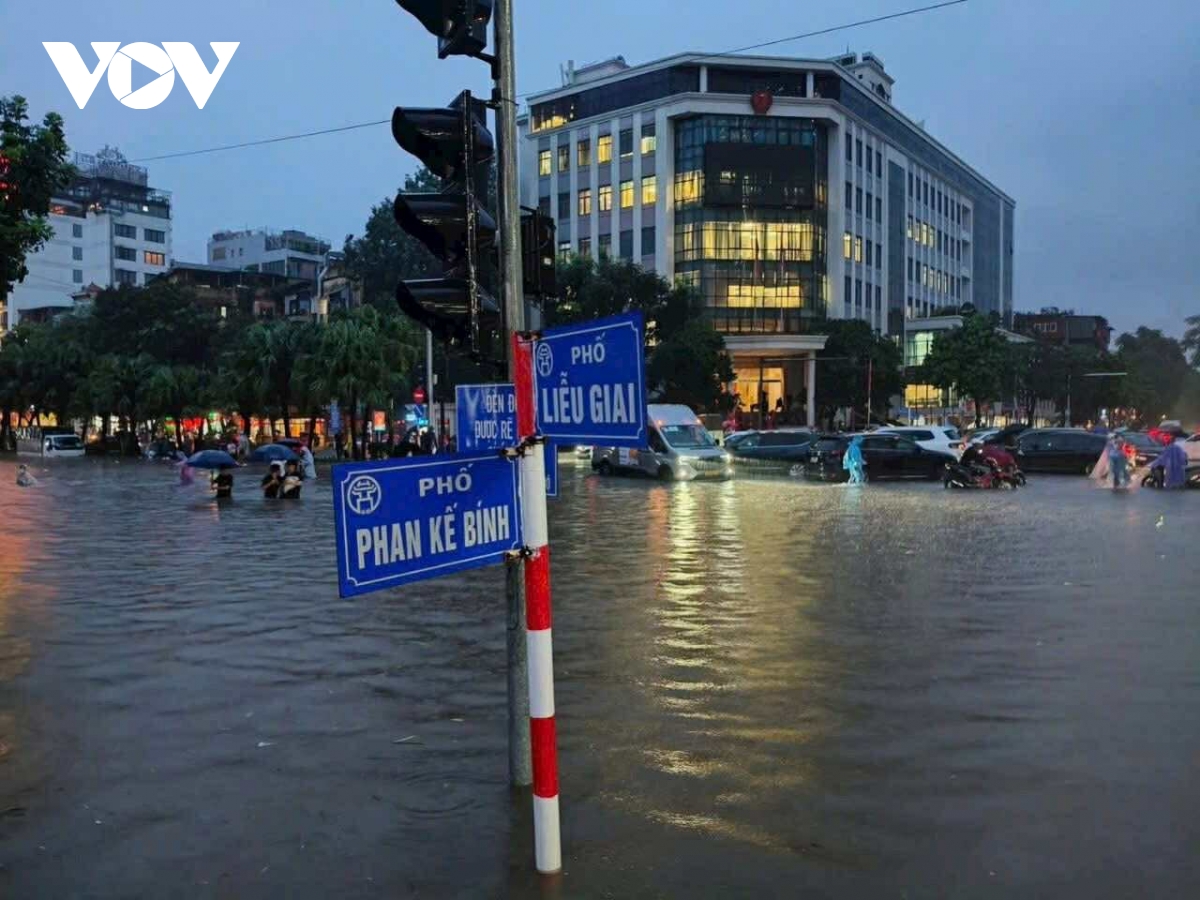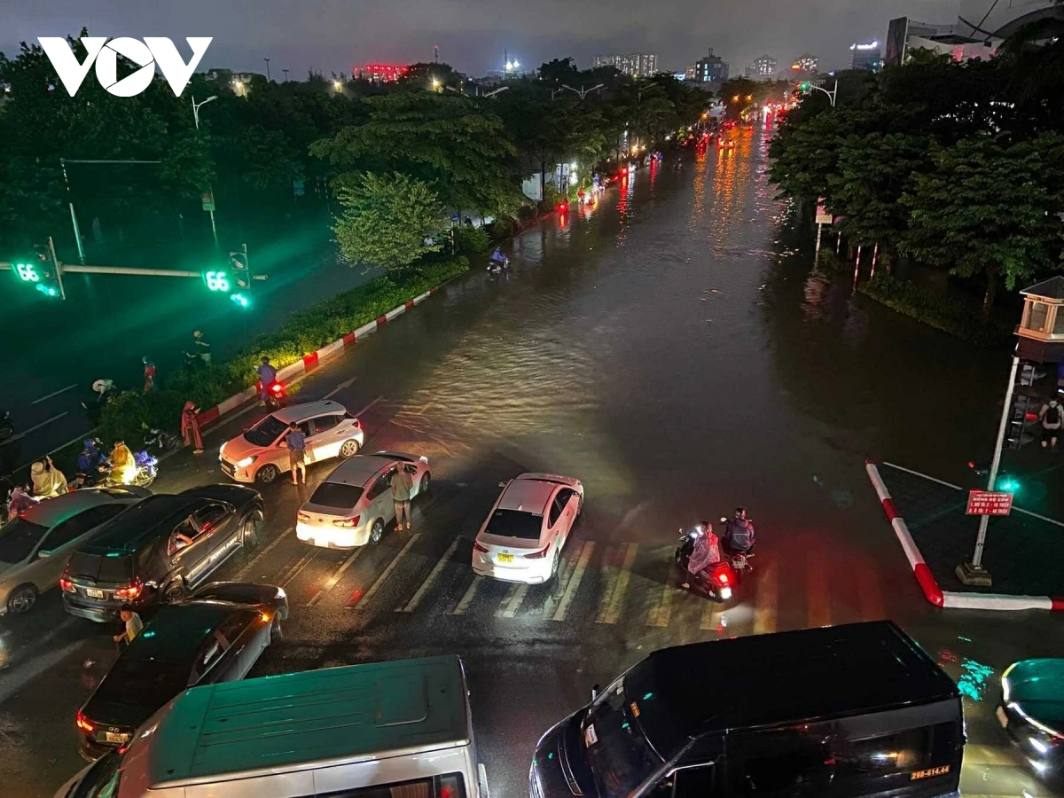 Theo ghi nhận của phóng viên, tới khoảng 20h tối 30/9, hàng loạt tuyến đường ở Hà Nội vẫn có nhiều điểm ngập sâu như Lê Quang Đạo, Trịnh Văn Bô, Hồ Tùng Mậu, Cầu Giấy, Liễu Giai, Phan Kế Bính... nhiều ôtô chết máy, có chiếc nổi lềnh bềnh giữa dòng.