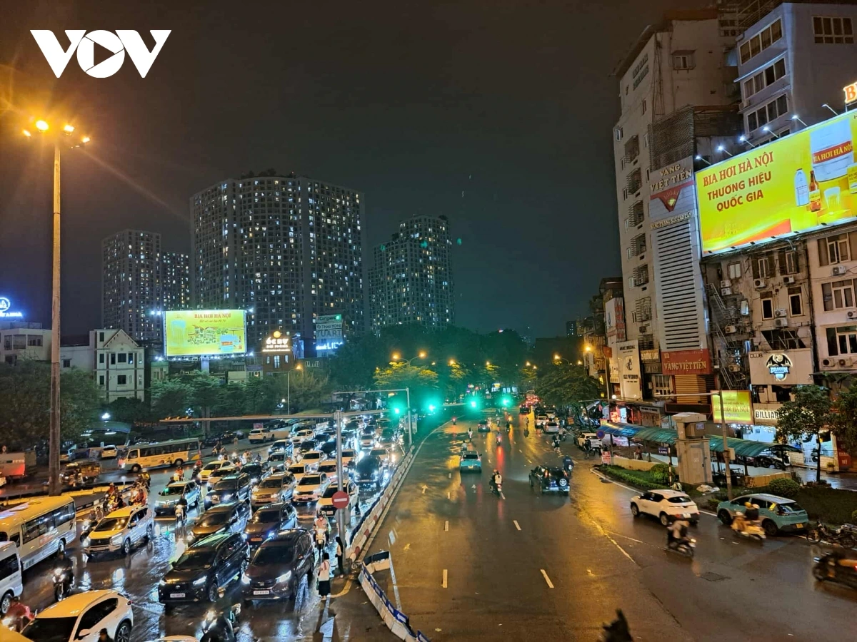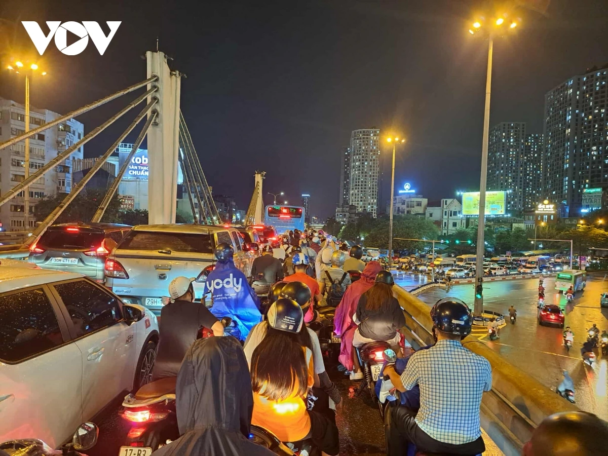 VOV.VN - Đến 20h00 tối 30/9, dù mưa đã dứt, giao thông Hà Nội vẫn đang trong tình trạng ùn tắc khắp nơi. Nhiều trường học đã phải thông báo cho học sinh ở lại qua đêm vì cha mẹ các em vẫn còn "vật lộn" nhích từng bước trên đường.