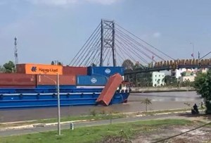 Xử lý “tàu khủng” vướng đứt dây điện, rơi container xuống dòng kênh Chợ Gạo