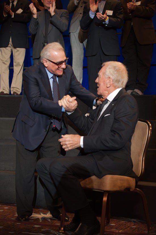 Đạo diễn huyền thoại Martin Scorsese và Max von Sydow (phải) tay bắt mặt mừng ngày 6/2/2012.Ảnh: Greg Harbaugh/AMPAS