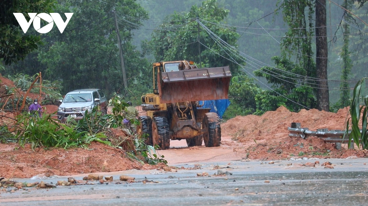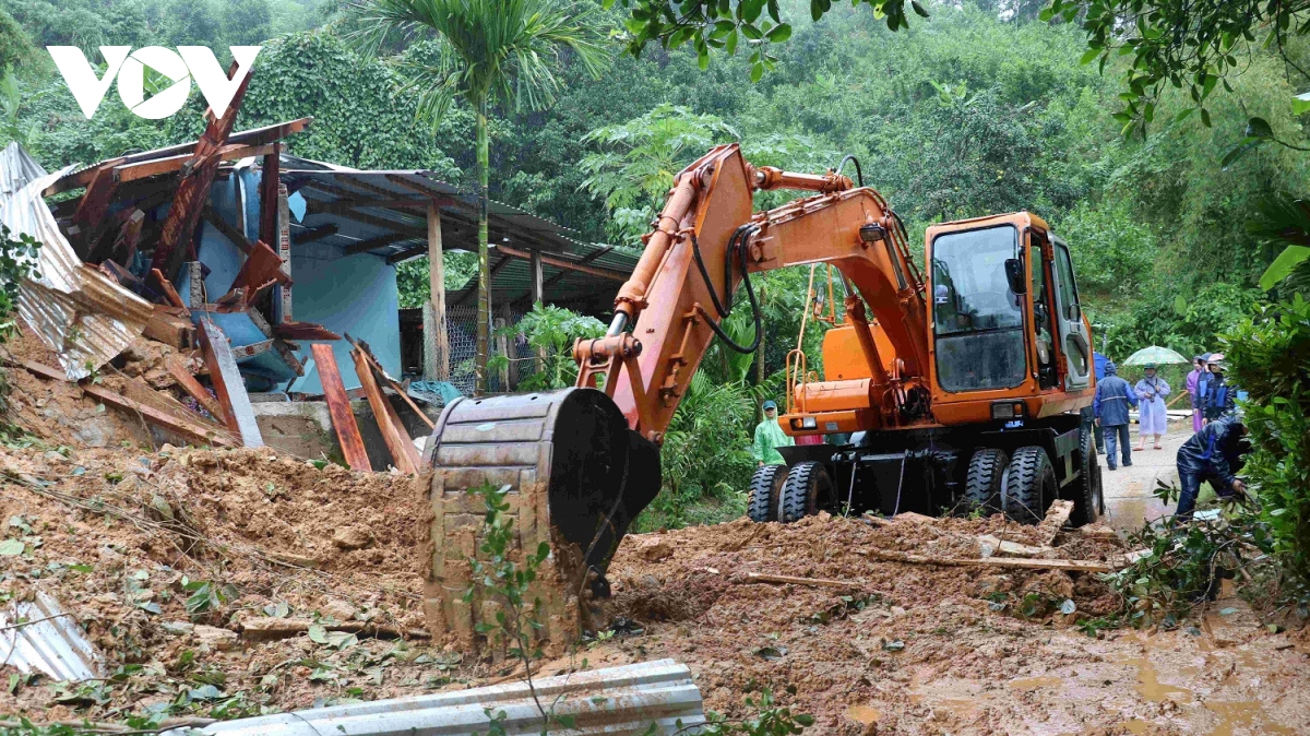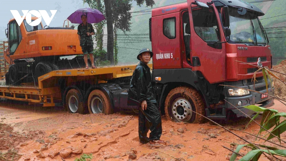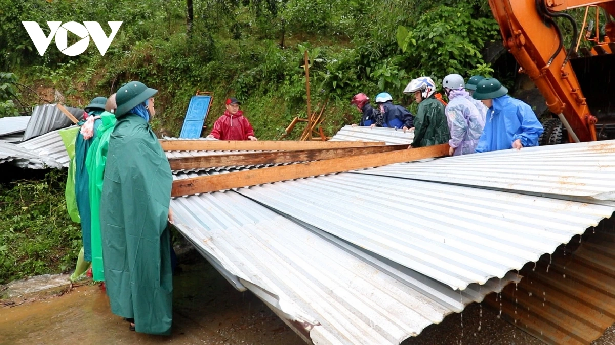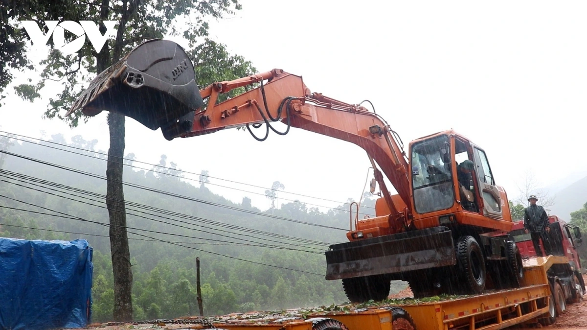 Bộ đội, dân quân cùng nhau thu dọn đống đổ nát. Giữa tiếng máy nổ, tiếng mưa rơi, vẫn vang lên những lời động viên nhịp nhàng “Cố lên anh em, thêm chút nữa là mở được đường!”