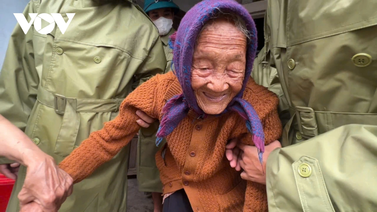 Giúp cụ bà gần 100 tuổi đi tránh bão