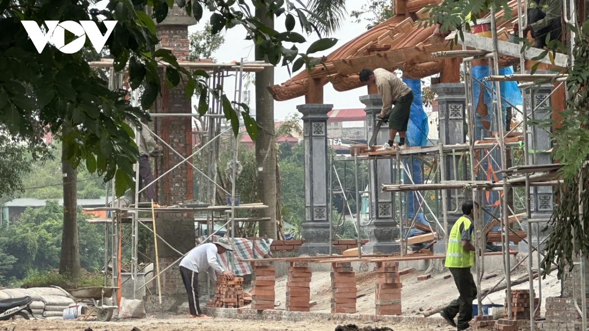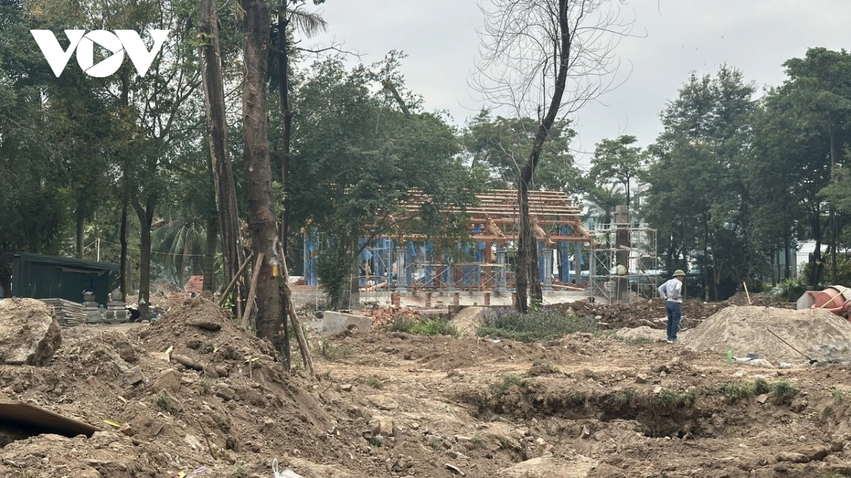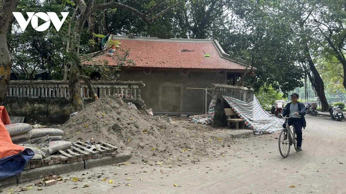 Khu vực miếu thờ đang được chỉnh trang.